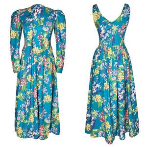 1980’s Vintage Laura Ashley Midi Cotton Dress and Jacket with Signature Ashley Floral Print