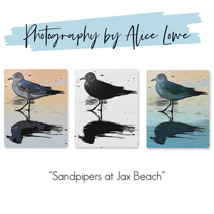Sandpipers at Jax Beach Triptych Wall Art Metal Panels Photography by Alice Lowe