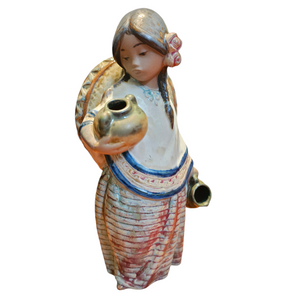Lladro Pepita Sombrero Mexican Girl Jug Figurine 2140 Gres Spain Collectible Art