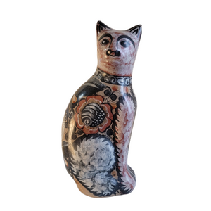 Tonala Burnished Clay Hand Painted Mestizo Ceramic Nahual Cat