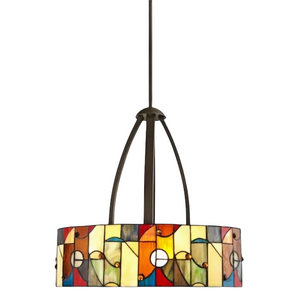 Oval Shaped Stained Glass Pendant Chandelier Light
