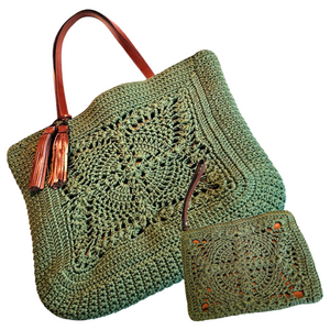 Pre-loved Patricia Nash Green Crochet Naomi Butterfly Tote and Matching Wristlet
