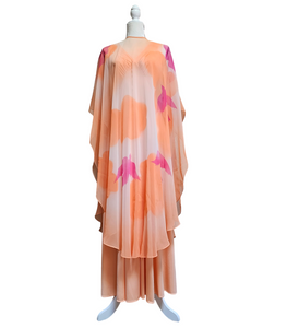 Tori Richard 1970’s Vintage Hawaiian Floral Print Caftan Resort Wear Hostess Dress Medium