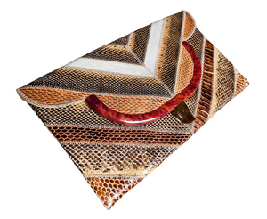 Vintage 1970’s Varon Patchwork Snakeskin Envelope Removable Chain Clutch Purse