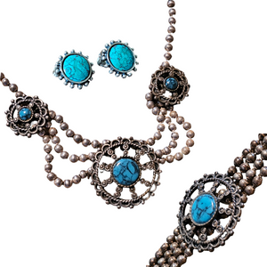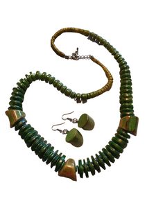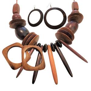 Vintage Distressed Chunky Wood Necklace & Earrings Set