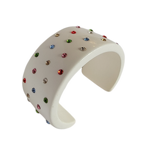 Vintage White Chunky Wide Lucite Rhinestones Cuff