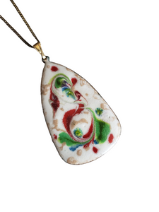 Vintage Modernist Abstract Artisan Enamel on Copper Pendant Necklace