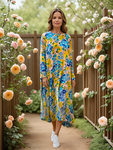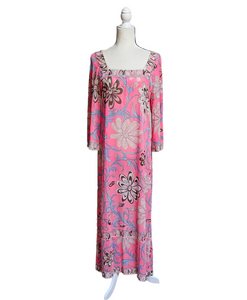 Tori Richard 1970’s Vintage Hawaiian Floral Print Caftan Resort Wear Hostess Dress Medium