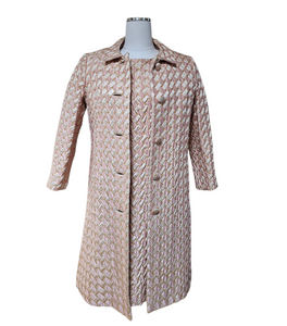 Vintage 1960s Maison Annette Custom Tailored in Hong Kong by Modiste East Brocade A-line Cocktail Dress and Coat Set