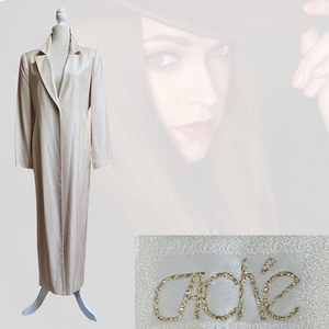 Vintage 1980’s CACHE 100% Spun Silk Cream Maxi Duster Coat Jacket Made in USA