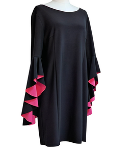 Pre-loved Nicole Miller Cocktail Spandex Little Black Dress Pink Romantic Statement Sleeves 14