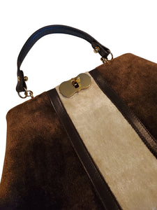 Pre-Loved Vintage Roberta di Camerino two toned chocolate and cream-colored velvet and brown leather handbag
