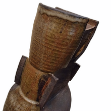 DESIGN FIND - The perfect vase for your dried décor such as bamboo, cattails, thistle, and willow branches, etc. The beautiful shapes, glazes and textures on each panel makes it special. It appears that the bottom portion of the vase was wheel thrown with slab pieces of clay attached to the upper portion of the vase. Meticulously executed! A one-of-a-kind piece of art pottery. The artist is unknown. The dealer in Chicago acquired it from an estate in Chicago that had many Danish décor items.