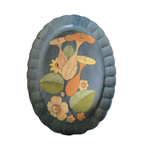 22" Vintage Oval Tlaquepaque Mexican Pottery "Art Deco" Grained Platter