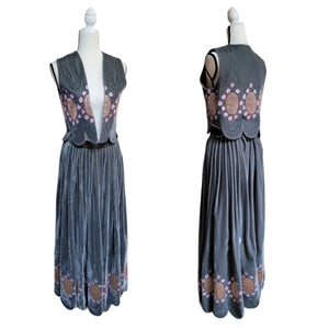 1970’s Vonnie Reynolds Embroidered Velvet Skirt and Vest from Ireland’s Historical Bunratty Cottage Couture Workshop
