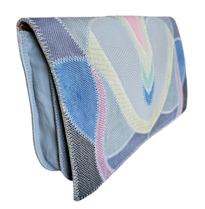 Furst & Mooney Snakeskin Leather Vintage Large Handmade Clutch Purse Pastel Colors