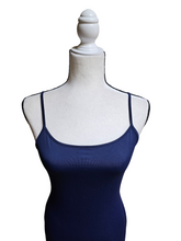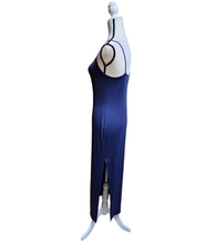 This simple, yet elegant navy-blue maxi dress was designed by Gianfranco Ferre.
