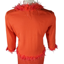 Stunning! Pre-owned, new with tags. Features clusters of tulle ribbon with beads and synthetic feathers. Hidden front buttons closure.