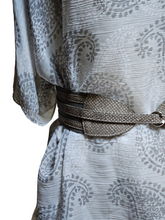 Dress it up in style with this embossed snakeskin leather grey belt.