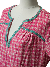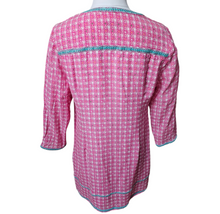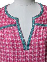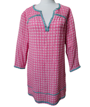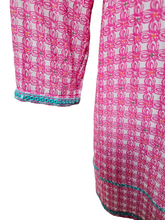 This beautiful, pre-owned Vineyard Vines dress is made of 100% silk and features a lovely pink geometric pattern. The dress has a V-neckline, long sleeves, and a zip closure. It is perfect for any occasion, whether it be a party or a casual day out. The knee-length dress is fully lined and made of chiffon fabric, making it a comfortable and stylish choice. It has been designed with care and attention to detail, ensuring its high quality. This dress is a great addition to any wardrobe and is sure to make you feel confident and beautiful.